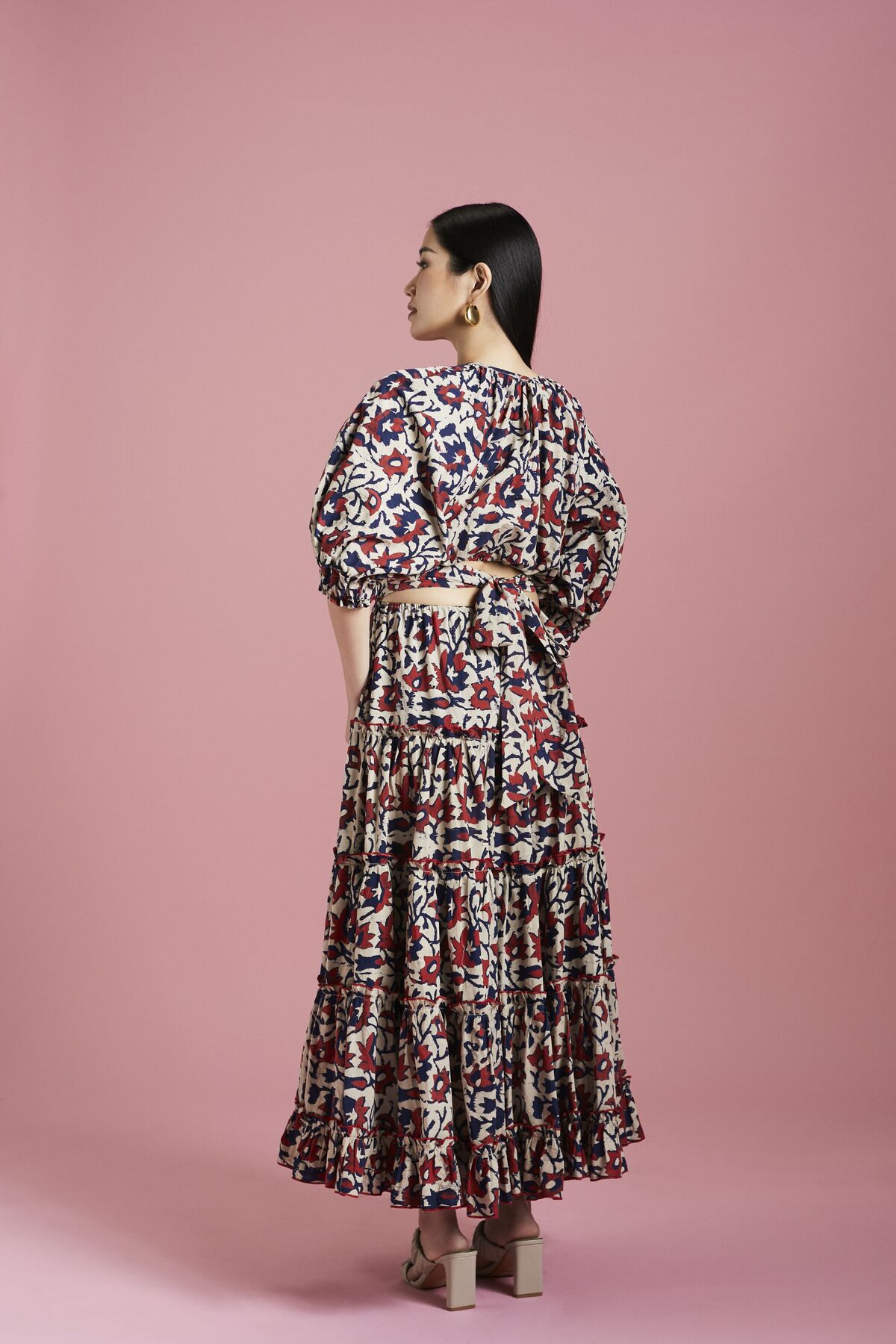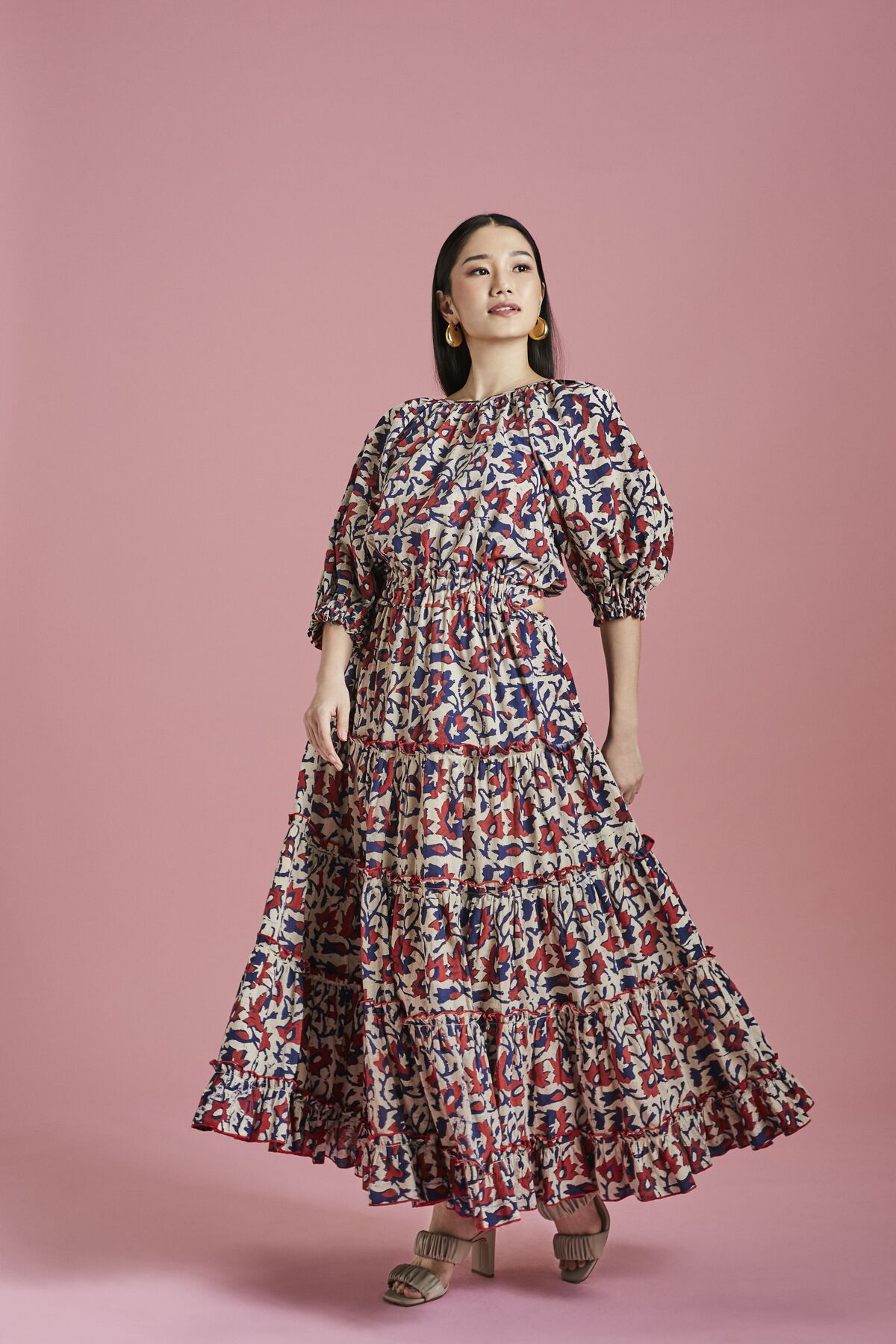 The multicoloured Soraya midi dress features jewel tones in the softest organic cotton. The softly gathered open back bodice adds a beautiful details with a tie sash while the fabrication’s lightweight organic cotton offers the most comfortable wearable fit. Our signature billowing balloon sleeves and voluminous tiered skirt stays true to the brand’s aesthetics and adds a beautiful silhouette, perfect for a day to night outfit.