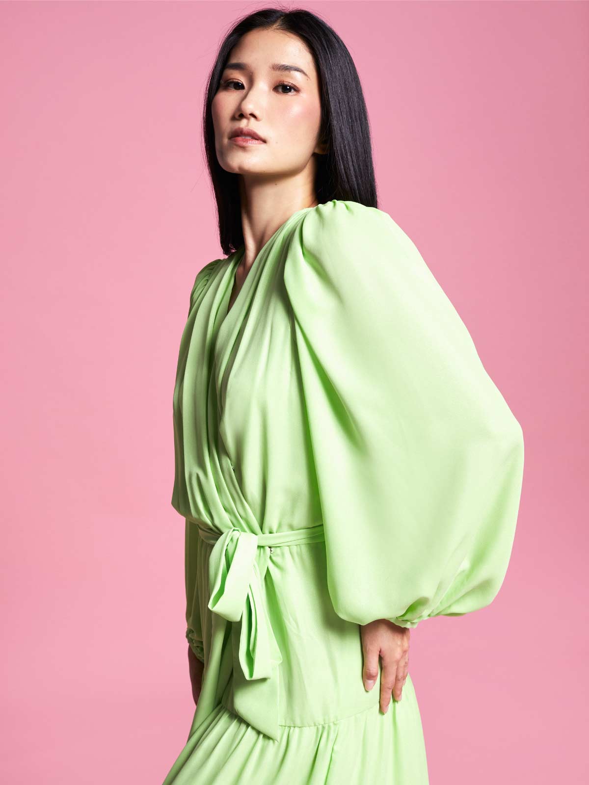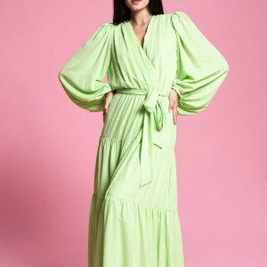 Make a lasting impression in our must have signature Tamara maxi dress, crafted in luxurious crepe chiffon, designed to flow and sway with every movement perfect for special occasions or elegant evenings. Delicate in movement yet stunning in vibrant green the Tamara shines with blowing long sleeves and tier long skirt.